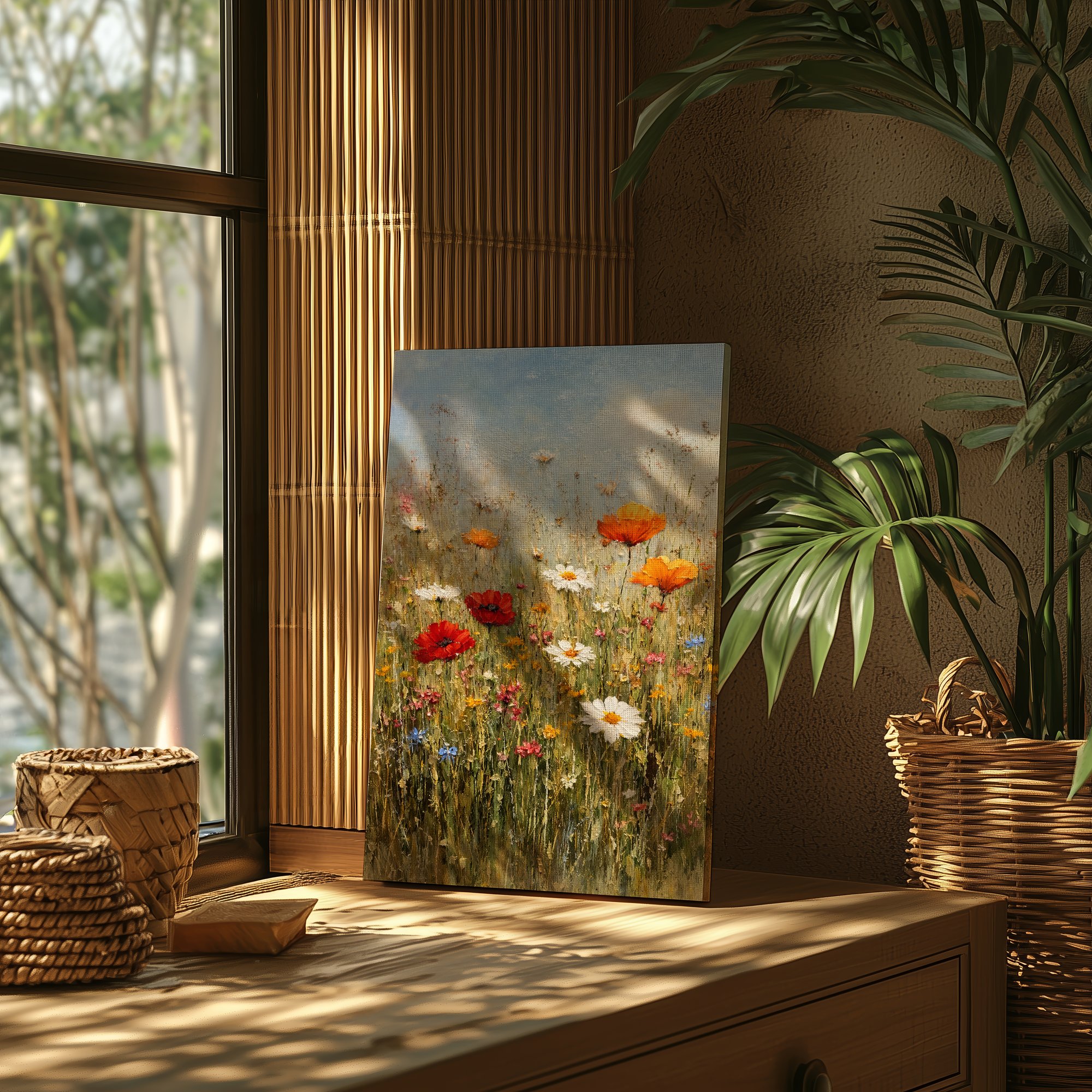 Ideal for bedrooms seeking a calming focal point, in a bathroom for a spa-like ambiance, or above a living room console table. Also works beautifully in a meditation room or a hallway with natural light. Pairs with French country, Provençal, Scandinavian, modern farmhouse, and contemporary Indian interiors — complements lavender accents, white linen, wooden furniture, and rooms in neutral or cool tones.