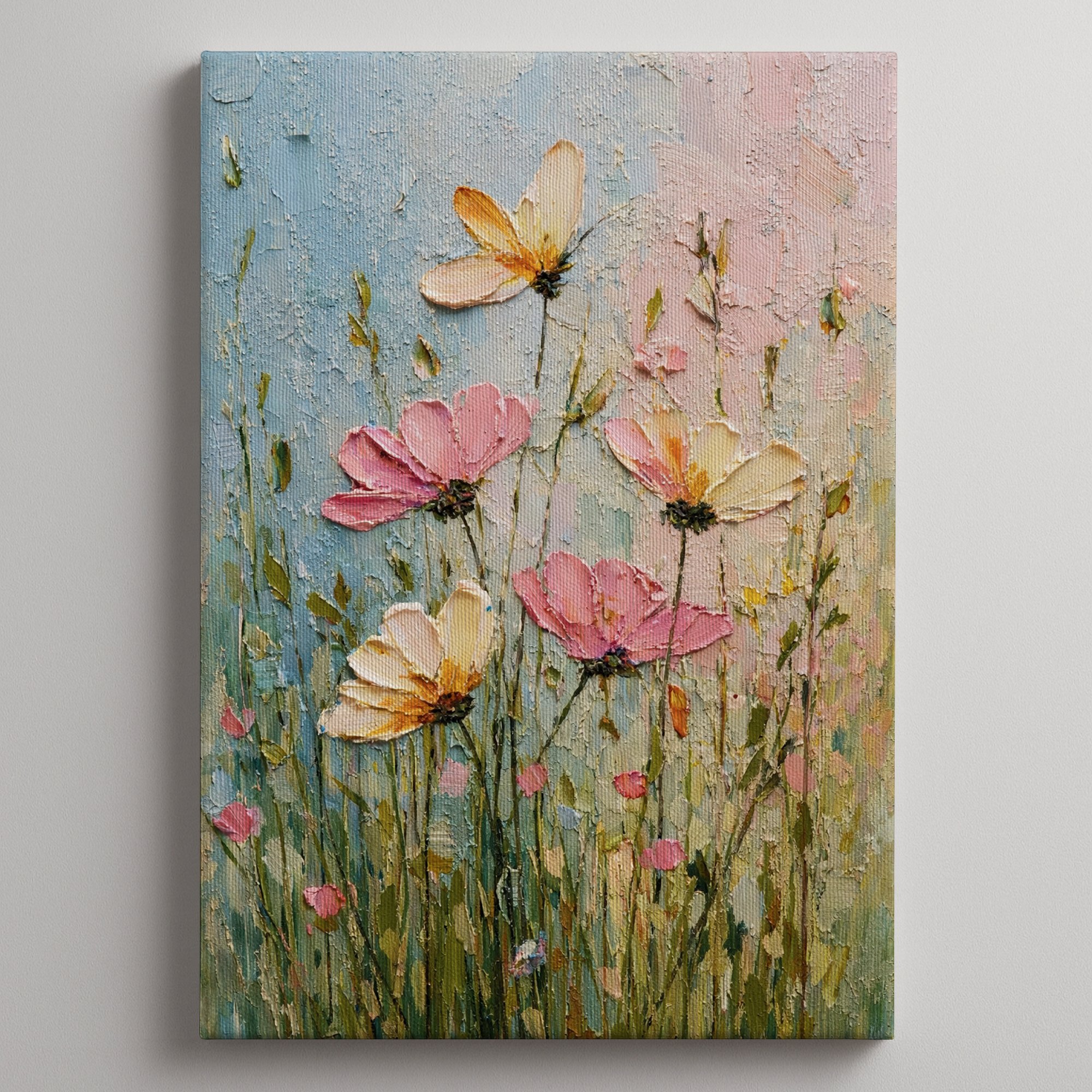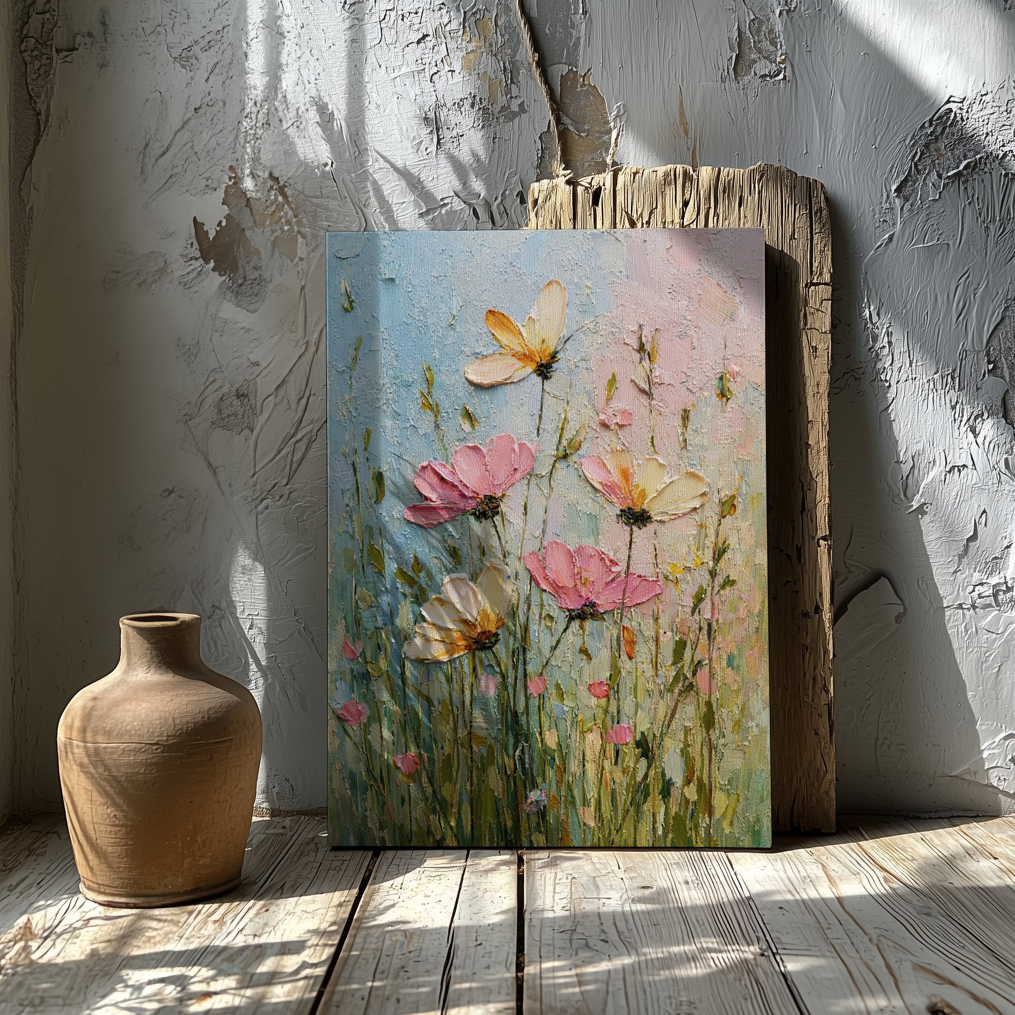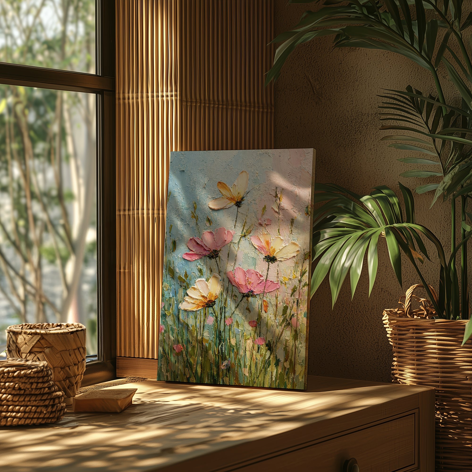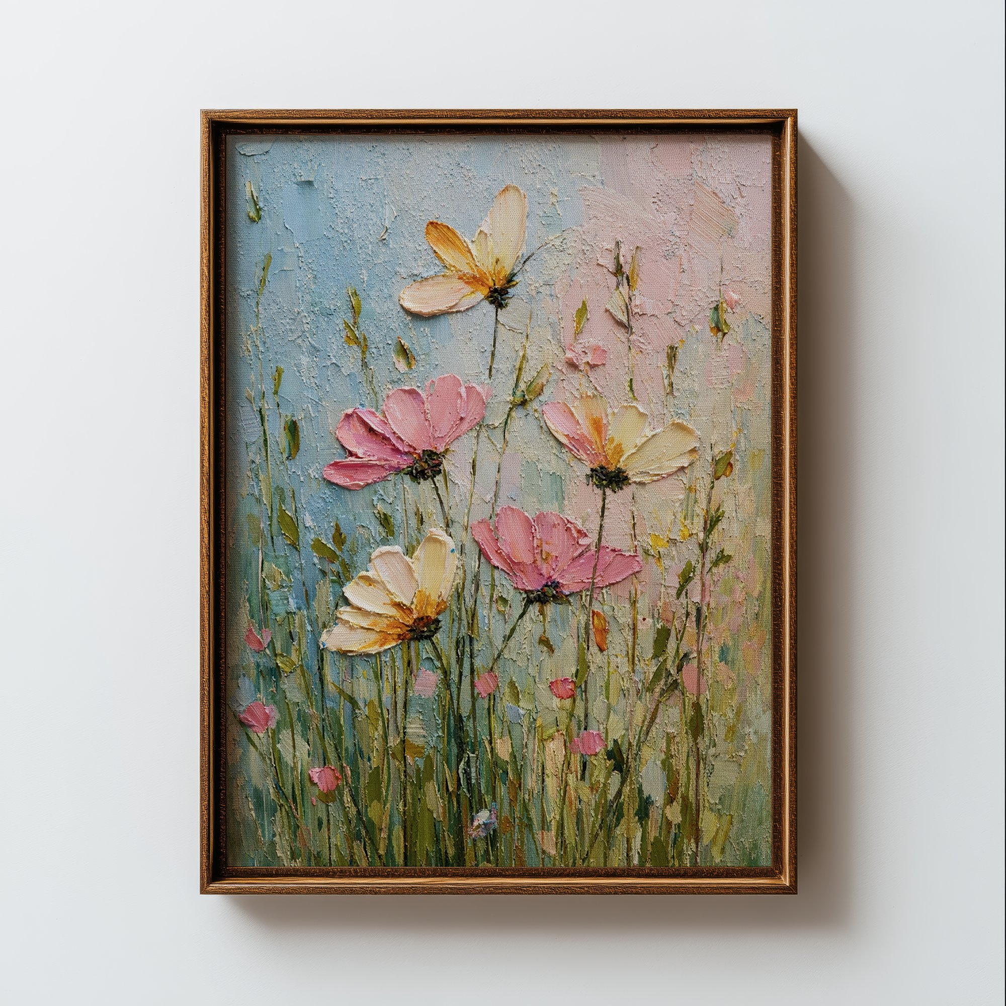 A stunning focal point above a living room sofa, a vibrant accent in a bedroom, or a bold statement piece in a dining room. Also works beautifully in a dressing room or feminine home office. Pairs with modern classic, maximalist, boho, French country, and warm contemporary interiors — complements blush or coral cushions, gold-toned accents, velvet upholstery, and rooms with warm ambient lighting.